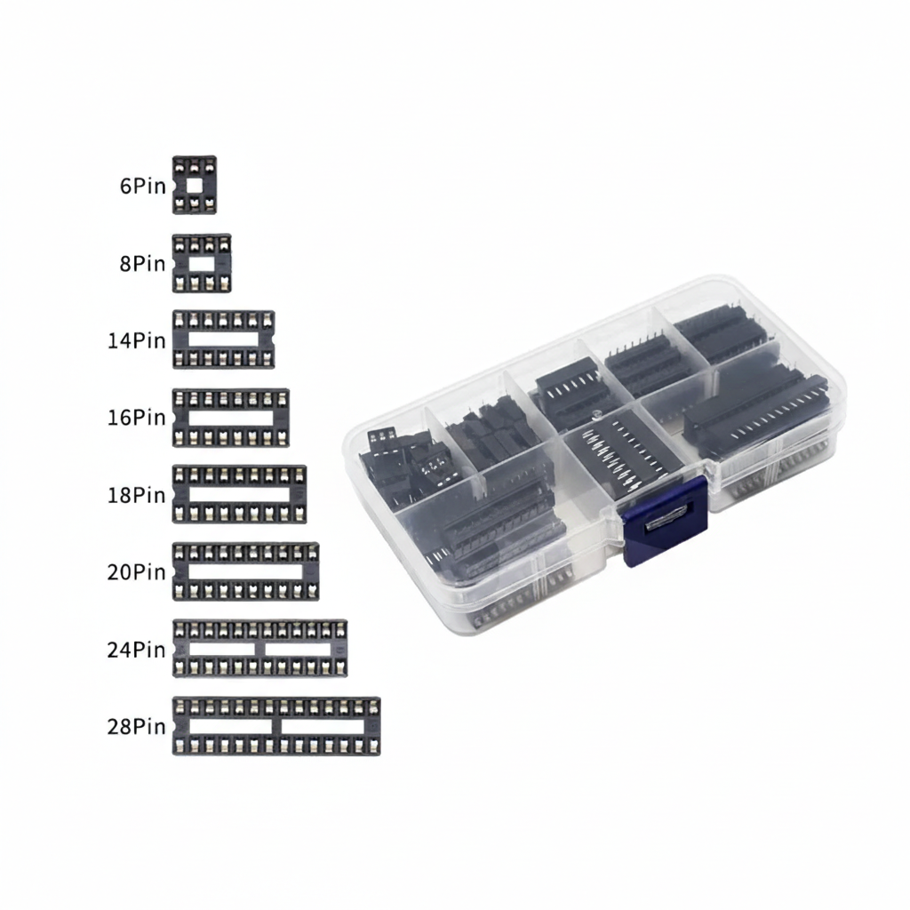 El Kit de Zócalos DIP para Circuitos Integrados es un imprescindible en cualquier mesa de trabajo maker 🧠🔧. Ideal para Arduino, robótica, electrónica educativa y prototipado, permite instalar y reemplazar ICs sin soldarlos directamente, evitando daños por calor y facilitando pruebas rápidas.