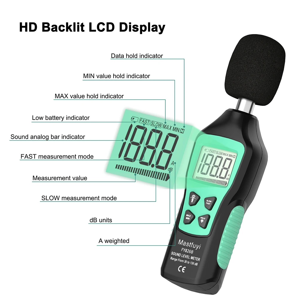 Con este decibelímetro digital, podrás mantener un entorno seguro y saludable controlando los niveles de ruido con precisión profesional.