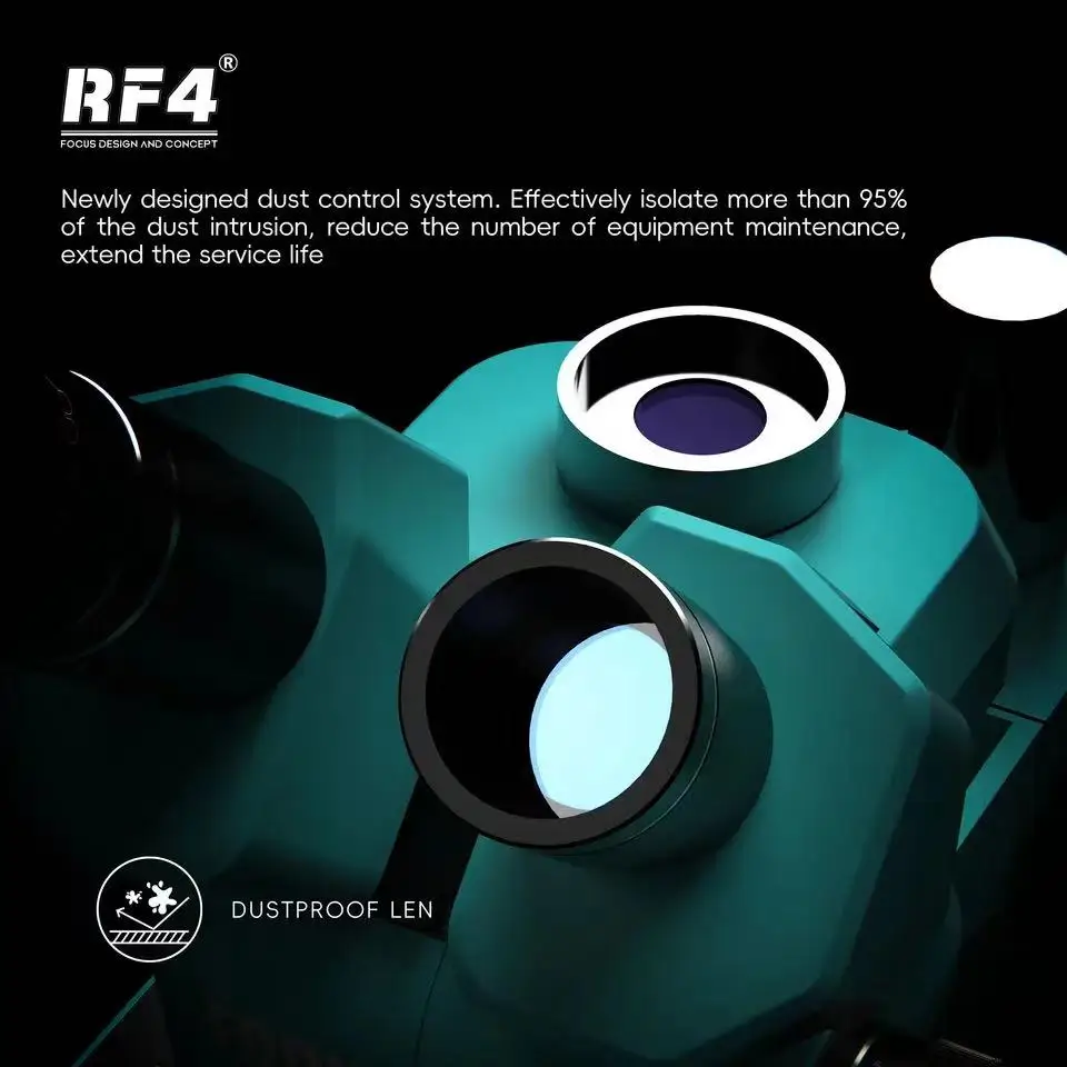 El microscopio estereoscópico RF4 RF-55PM-B52 está diseñado para reparación electrónica avanzada, microsoldadura SMD/BGA, inspección de precisión y laboratorio, ofreciendo una imagen clara, estable y confiable 🔧🔬